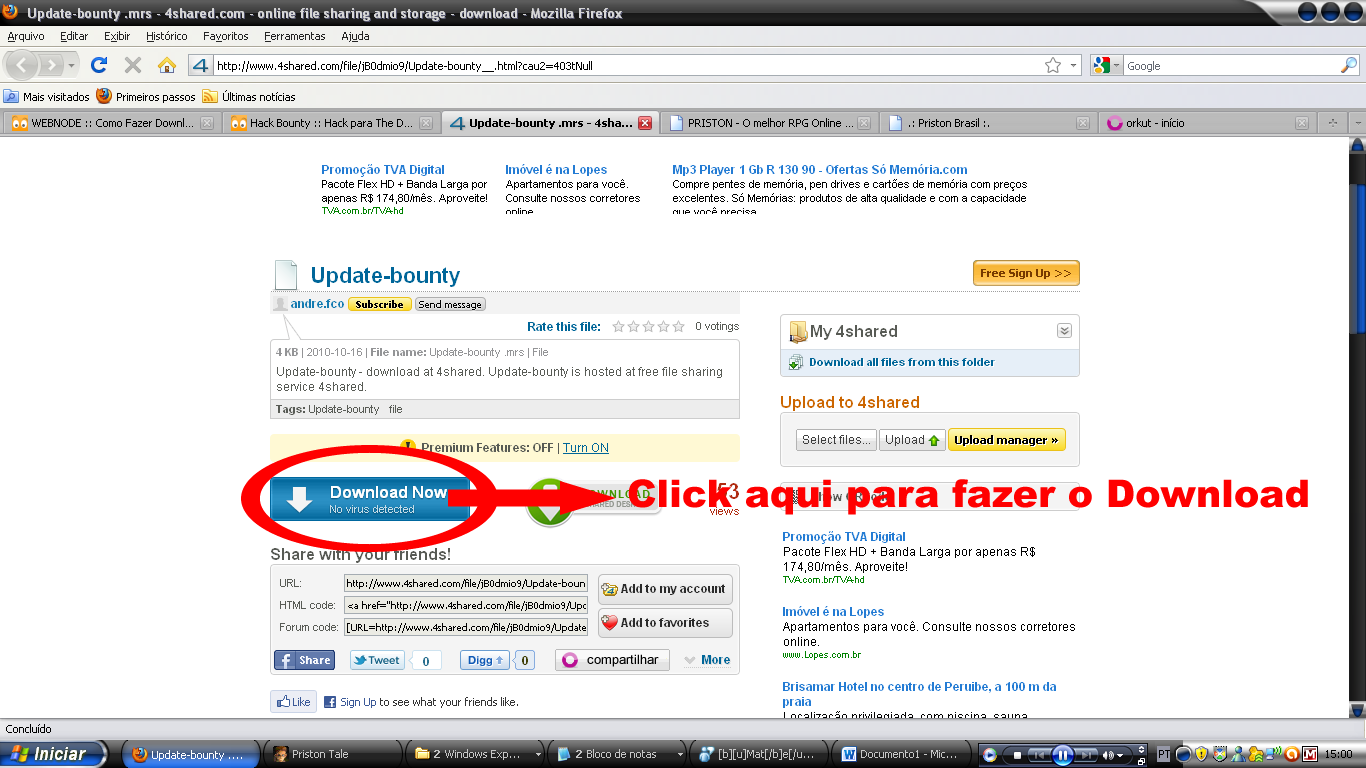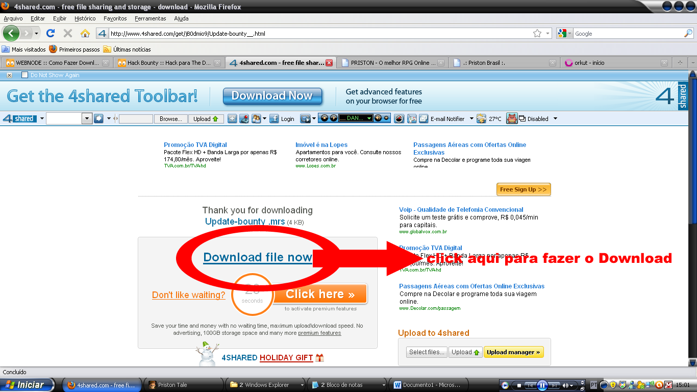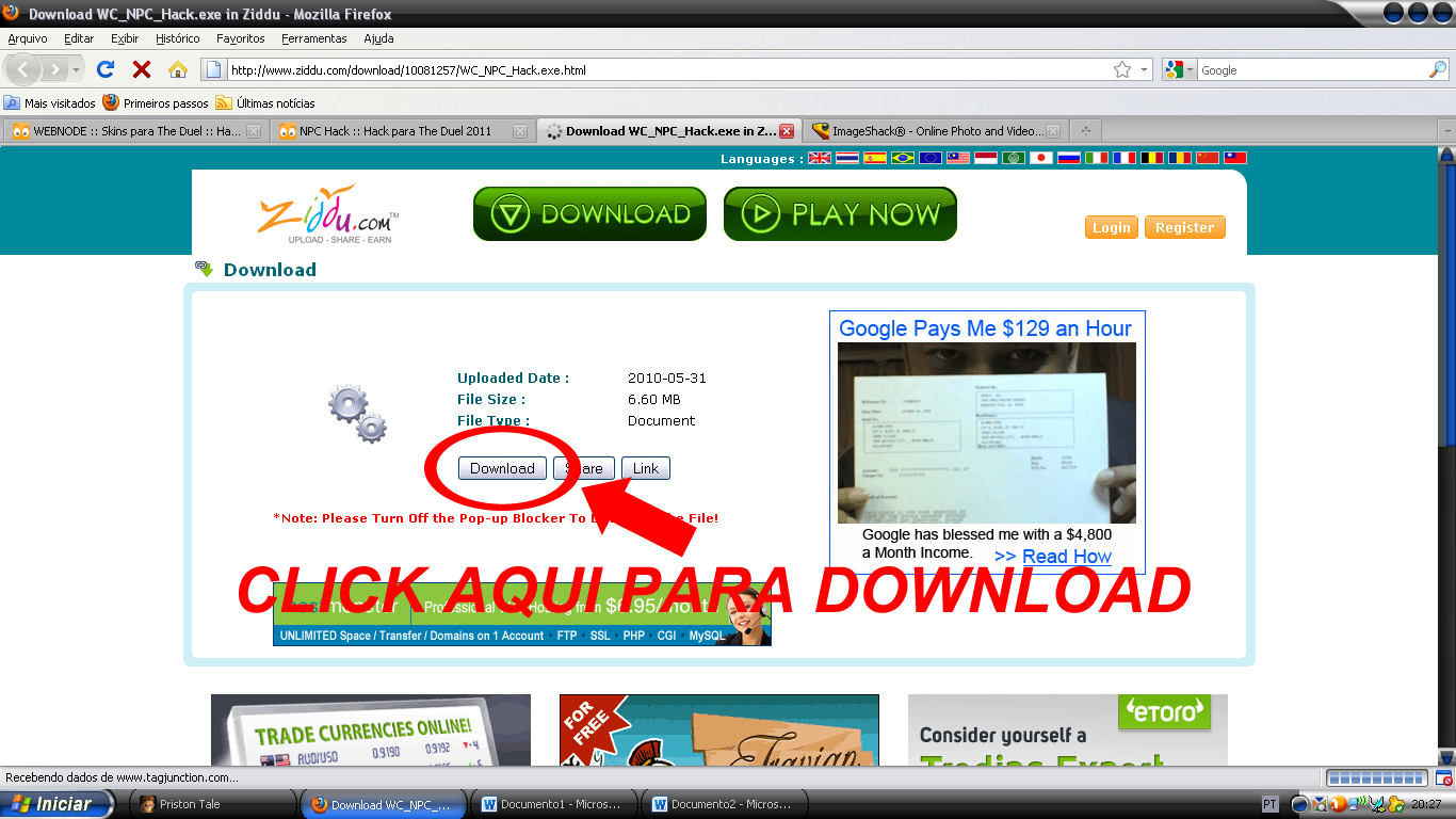 3ª Terceiro Click em Download, a parte em que alguns estão achando dificil e resolvir criar este Tutorial para ajudar a quem não esta conseguindo fazer o download de seu hack favorito